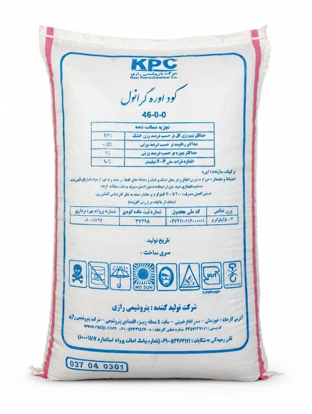 کود شیمیایی اوره گرانول شرکت پتروشیمی رازی کیسه 50 کیلوگرم