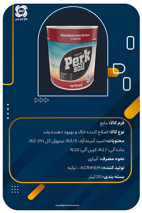 کود تقویتی اصلاح کننده خاک و ضد شوری پرک سویل PERK SOIL مایع اگریکم AGRIKEM ترکیه 20 لیتر گالن